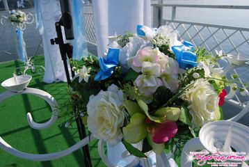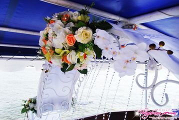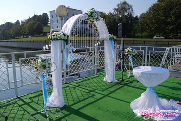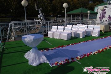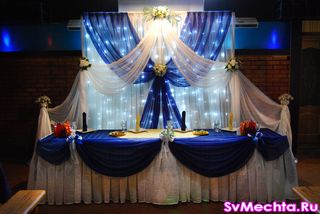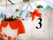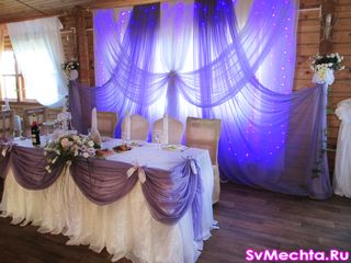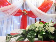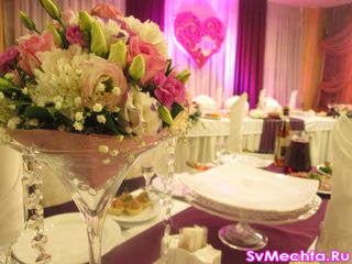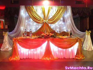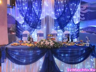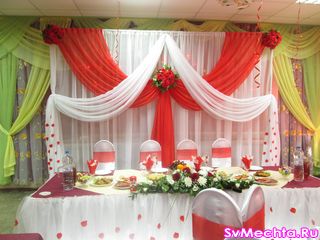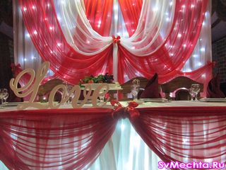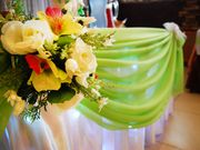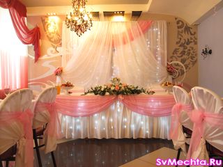 - Оформление банкетного зала: тканями, живыми цветами, гелиевыми шарами, декорациями